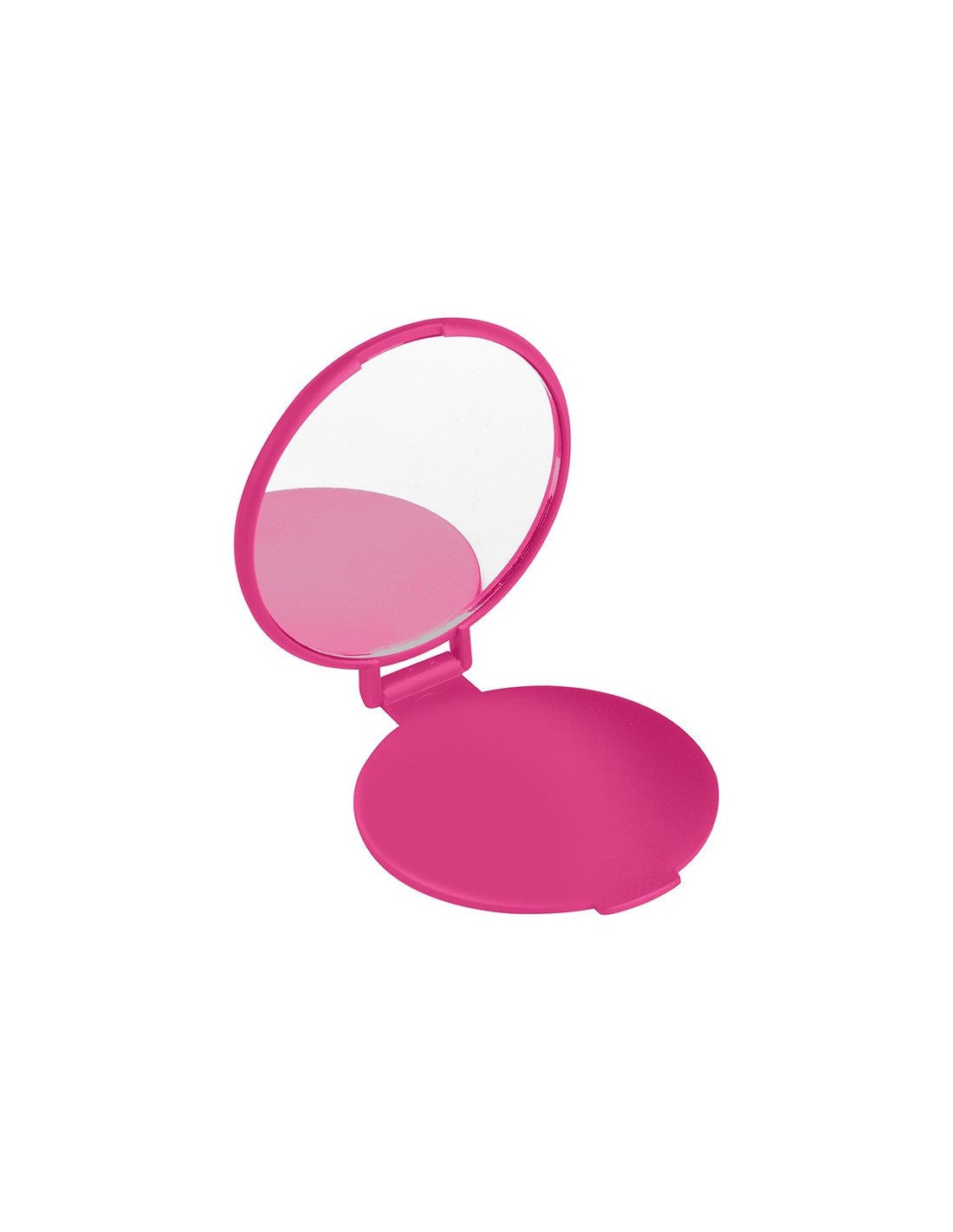 specchietto da borsa corredato di bustina tecnica di stampa consigliata: serigrafica - tampografica - UV // Dimensione Articolo:Ø cm 6 ca // Colore Articolo: Fucsia // Materiale Articolo: plastica