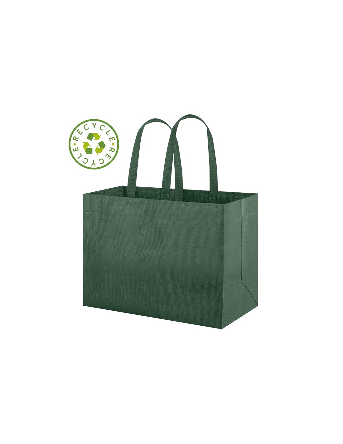borsa shopping ecologica manici lunghi rifiniture termosaldate borsa eco con 50% pet riciclato 100% riutilizzabile e 100% riciclabile ottima alternativa alle buste di plastica usa e getta pieghevole e spaziosa idoneo a contatto con alimenti extra resistente portata 40kg peso 100gsm lavabile in lavatrice tecnica di stampa consigliata: serigrafica e ricamo consigli per serigrafia: utilizzare inchiostro polionda, essiccare prima con forno a bassa temperatura e poi asciugare all'aria aperta // Dimensione Articolo:cm 48x22X39 ca // Colore Articolo: Verde // Materiale Articolo: TNT + RPET