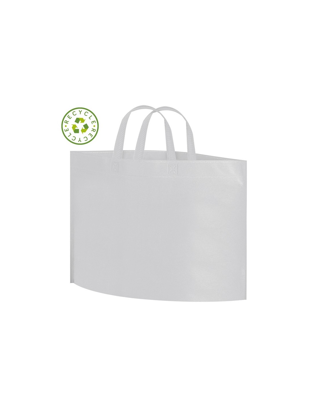 borsa shopping manici corti rifiniture termosaldate borsa eco con 50% pet riciclato 100% riutilizzabile e 100% riciclabile ottima alternativa alle buste di plastica usa e getta pieghevole e spaziosa idoneo a contatto con alimenti extra resistente portata 18kg peso 55gsm lavabile in lavatrice soft touch tecnica di stampa consigliata: serigrafica consigli per serigrafia: utilizzare inchiostro polionda, essiccare prima con forno a bassa temperatura e poi asciugare all'aria aperta // Dimensione Articolo:cm 50x40X15 ca // Colore Articolo: Bianco // Materiale Articolo: TNT + RPET