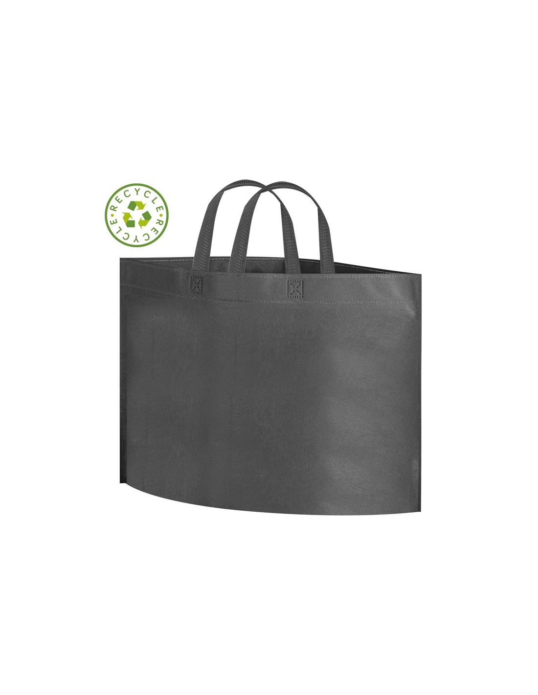borsa shopping manici corti rifiniture termosaldate borsa eco con 50% pet riciclato 100% riutilizzabile e 100% riciclabile ottima alternativa alle buste di plastica usa e getta pieghevole e spaziosa idoneo a contatto con alimenti extra resistente portata 18kg peso 55gsm lavabile in lavatrice soft touch tecnica di stampa consigliata: serigrafica consigli per serigrafia: utilizzare inchiostro polionda, essiccare prima con forno a bassa temperatura e poi asciugare all'aria aperta // Dimensione Articolo:cm 50x40X15 ca // Colore Articolo: Nero // Materiale Articolo: TNT + RPET