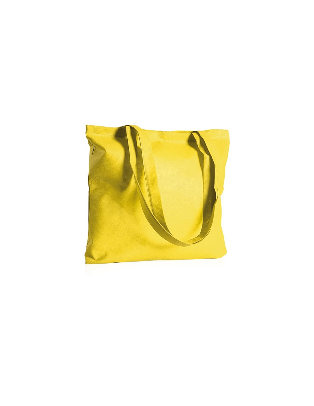 borsa shopping rifiniture cucite manici lunghi tecnica di stampa consigliata: serigrafica // Dimensione Articolo:cm 42x42 ca // Colore Articolo: Giallo // Materiale Articolo: tnt