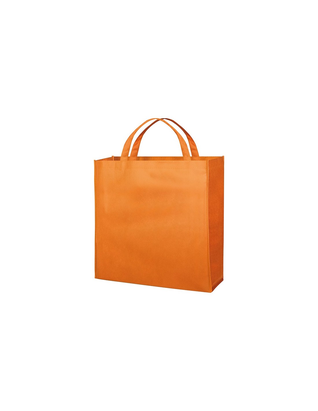 borsa shopping con soffietto rifiniture cucite manici corti tecnica di stampa consigliata: serigrafica // Dimensione Articolo:cm 45x45x14 ca // Colore Articolo: Arancio // Materiale Articolo: tnt