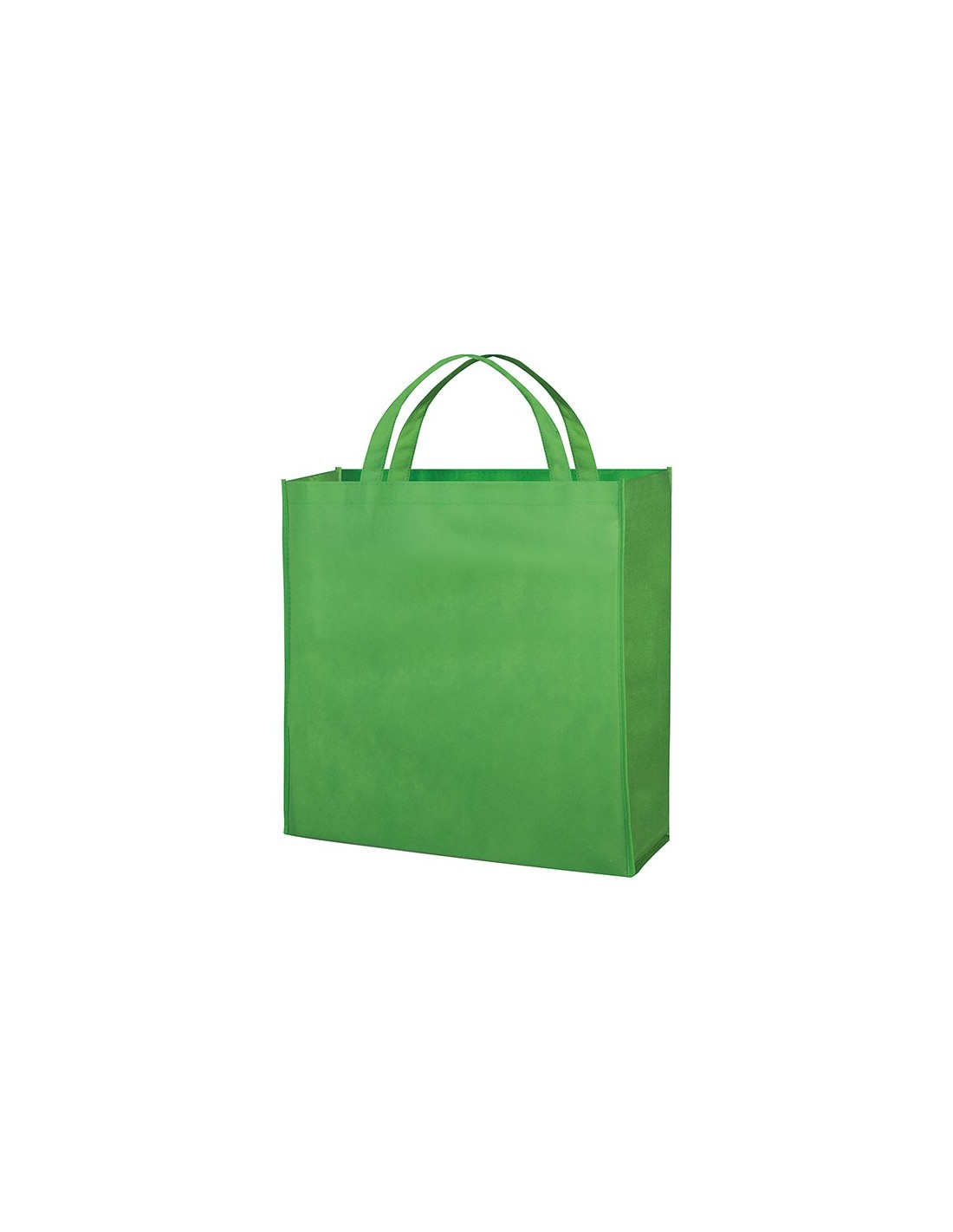 borsa shopping con soffietto rifiniture cucite manici corti tecnica di stampa consigliata: serigrafica // Dimensione Articolo:cm 45x45x14 ca // Colore Articolo: Verde Lime // Materiale Articolo: tnt