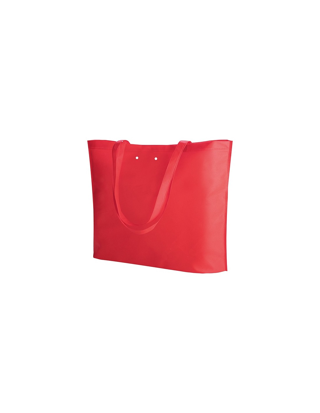 borsa shopping fondo con soffietto fori per l'introduzione di nastro nastro non incluso manici lunghi rifiniture termosaldate tecnica di stampa consigliata: serigrafica // Dimensione Articolo:cm 50x40x11 ca // Colore Articolo: Rosso // Materiale Articolo: tnt