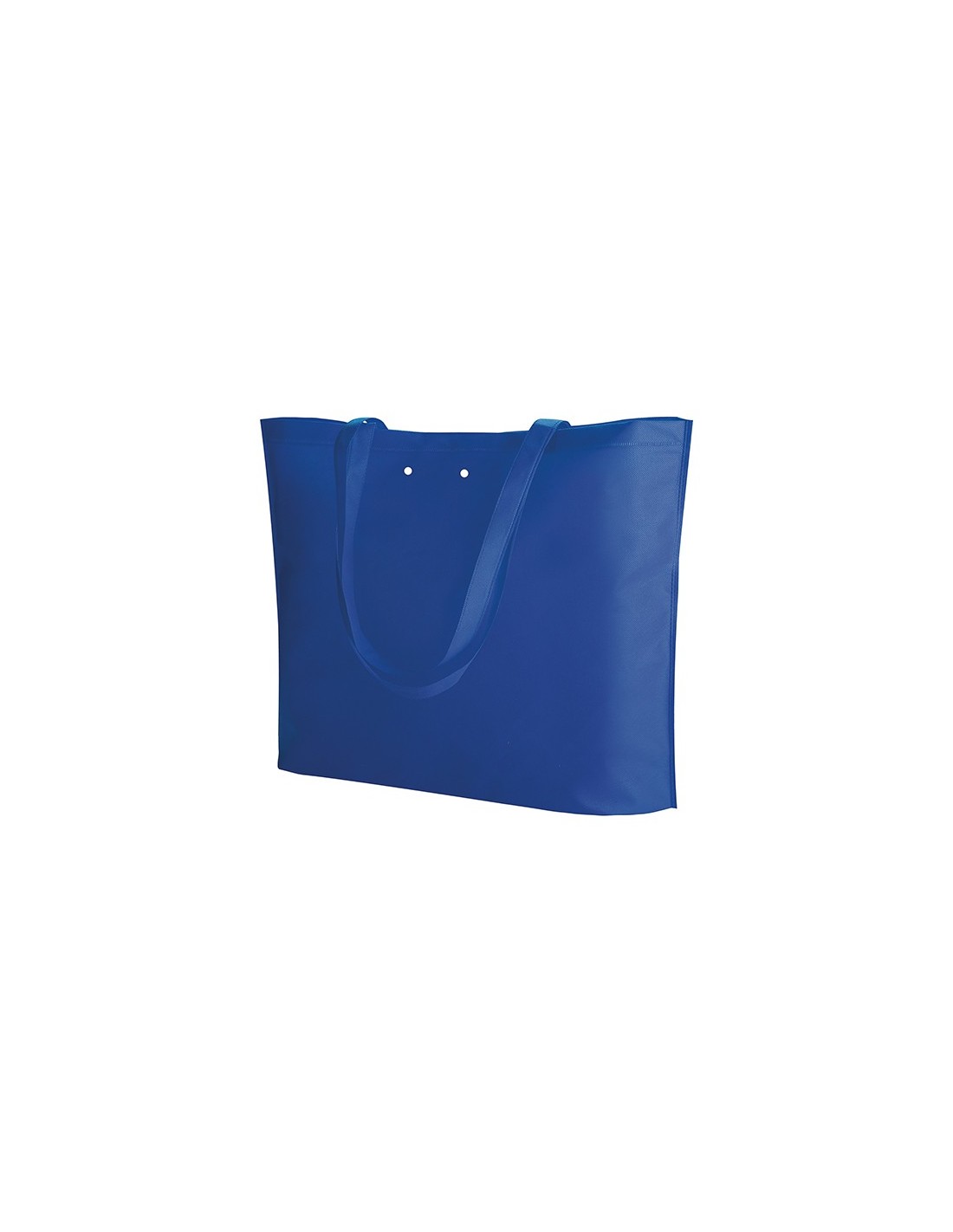borsa shopping fondo con soffietto fori per l'introduzione di nastro nastro non incluso manici lunghi rifiniture termosaldate tecnica di stampa consigliata: serigrafica // Dimensione Articolo:cm 50x40x11 ca // Colore Articolo: Royal // Materiale Articolo: tnt