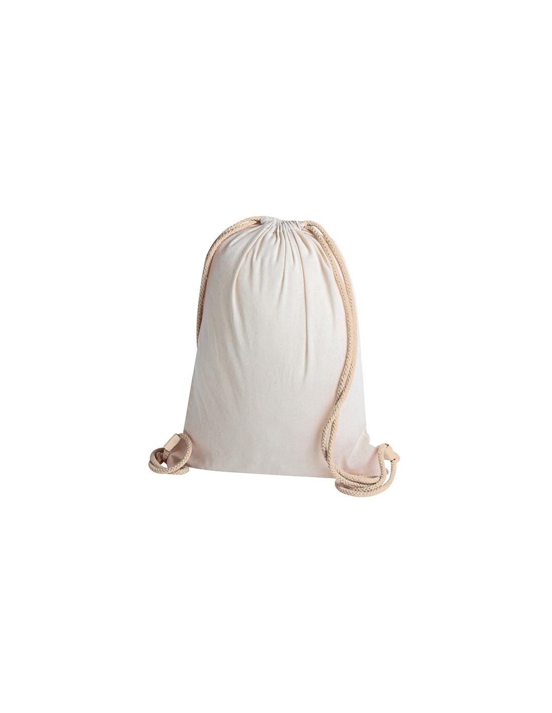 sacca zaino 100% cotone doppia corda di chiusura in cotone colore naturale rifiniture cucite tecnica di stampa consigliata: serigrafica - transfer - digitale 130 GR