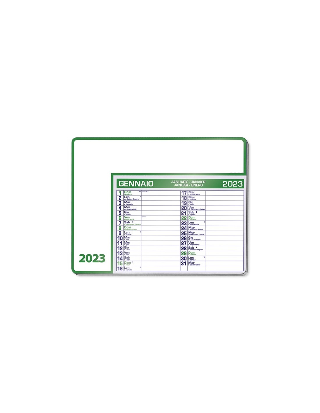 tappetino mouse calendario 12 mesi con note copertina rigida in pvc base in eva tecnica di stampa consigliata: serigrafica - digitale - UV // Dimensione Articolo:cm 23x18 ca // Colore Articolo: Verde // Materiale Articolo: carta, pvc, eva