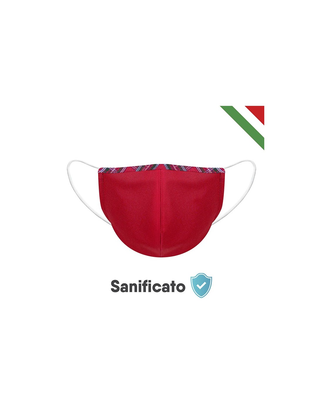 mascherine made in Italy prodotto sanificato esterno ed interno in 100% cotone interno in tnt idrorepellente lavabile e riutilizzabile elastico morbido e nasello regolabile certificati disponibili su richiesta cucitura parte superiore non è un dispositivo medico/sanitario spazio di stampa cm 8,5x10 ca per lato (larghezza per altezza) // Dimensione Articolo:cm 24x14 ca (larghezza per altezza) // Colore Articolo: Rosso // Materiale Articolo: cotone filtro in tnt elastene