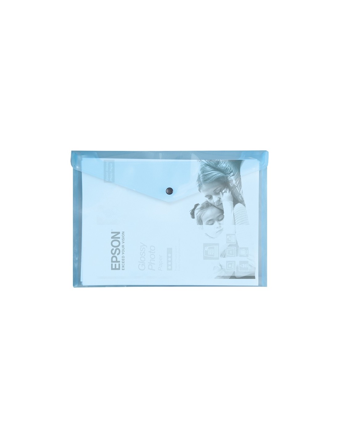 Cartellina portadocumenti in PP trasparente ex codice N8008 Formato A5 e chiusura con bottone a pressione Tecnica di stampa consigliata: serigrafia // Dimensione Articolo:cm 23,6 X 16,9 ca // Colore Articolo: Blu // Materiale Articolo: PP