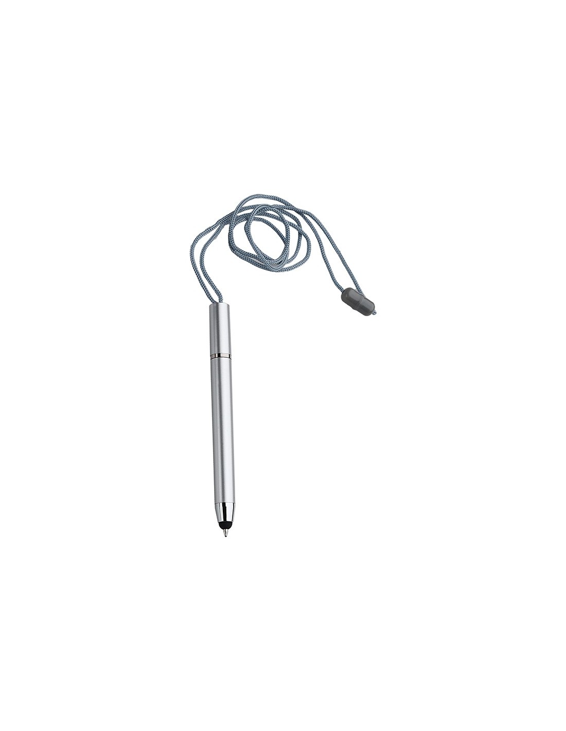 penna a sfera in plastica con gommino touch meccanismo a rotazione laccio da collo fusto colorato inchiostro nero tecnica di stampa consigliata: tampografica // Dimensione Articolo:cm 12 x 10,3 ca // Colore Articolo: Silver // Materiale Articolo: plastica