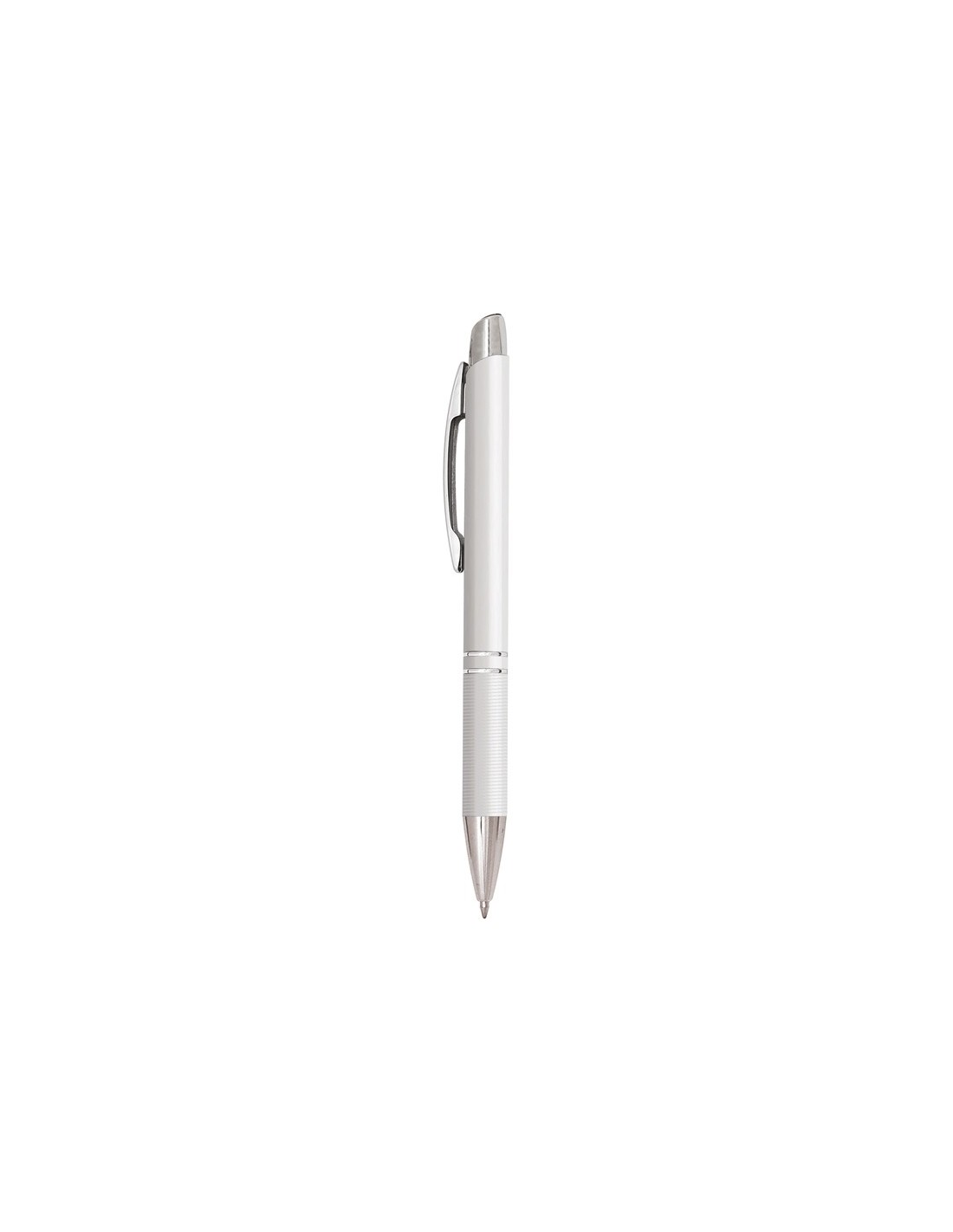 penna a scatto ex codice N0101 fusto colorato minuterie cromate clip in metallo refill nero tecnica di stampa consigliata: laser // Dimensione Articolo: // Colore Articolo: Bianco // Materiale Articolo: alluminio