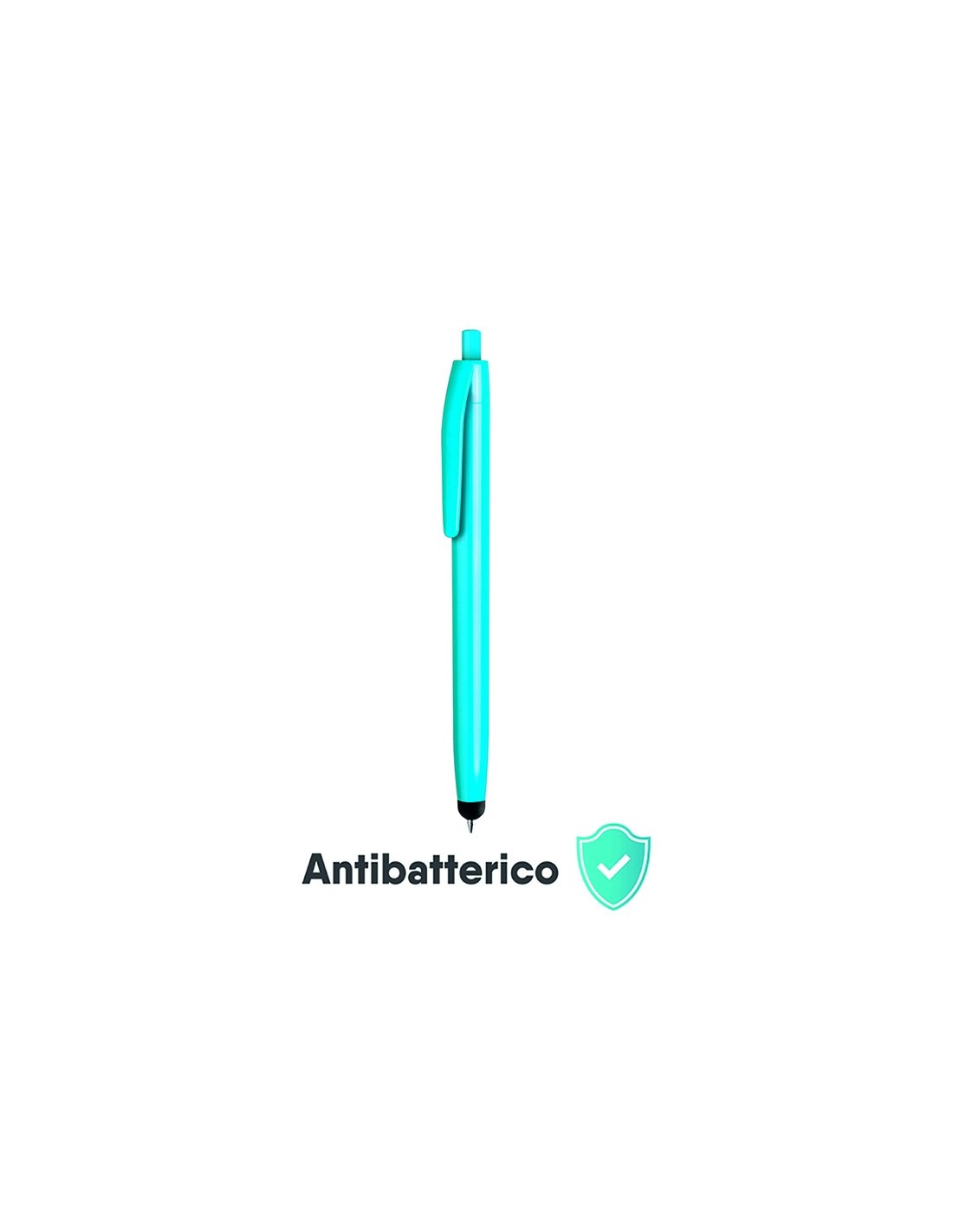 penna a sfera con gommino per touch screen meccanismo a scatto corpo in plastica colorata inchiostro nero tecnica di stampa consigliata: serigrafica - tampografica - UV // Dimensione Articolo:Ø cm 1,05xh14 ca // Colore Articolo: Azzurro // Materiale Articolo: plastica