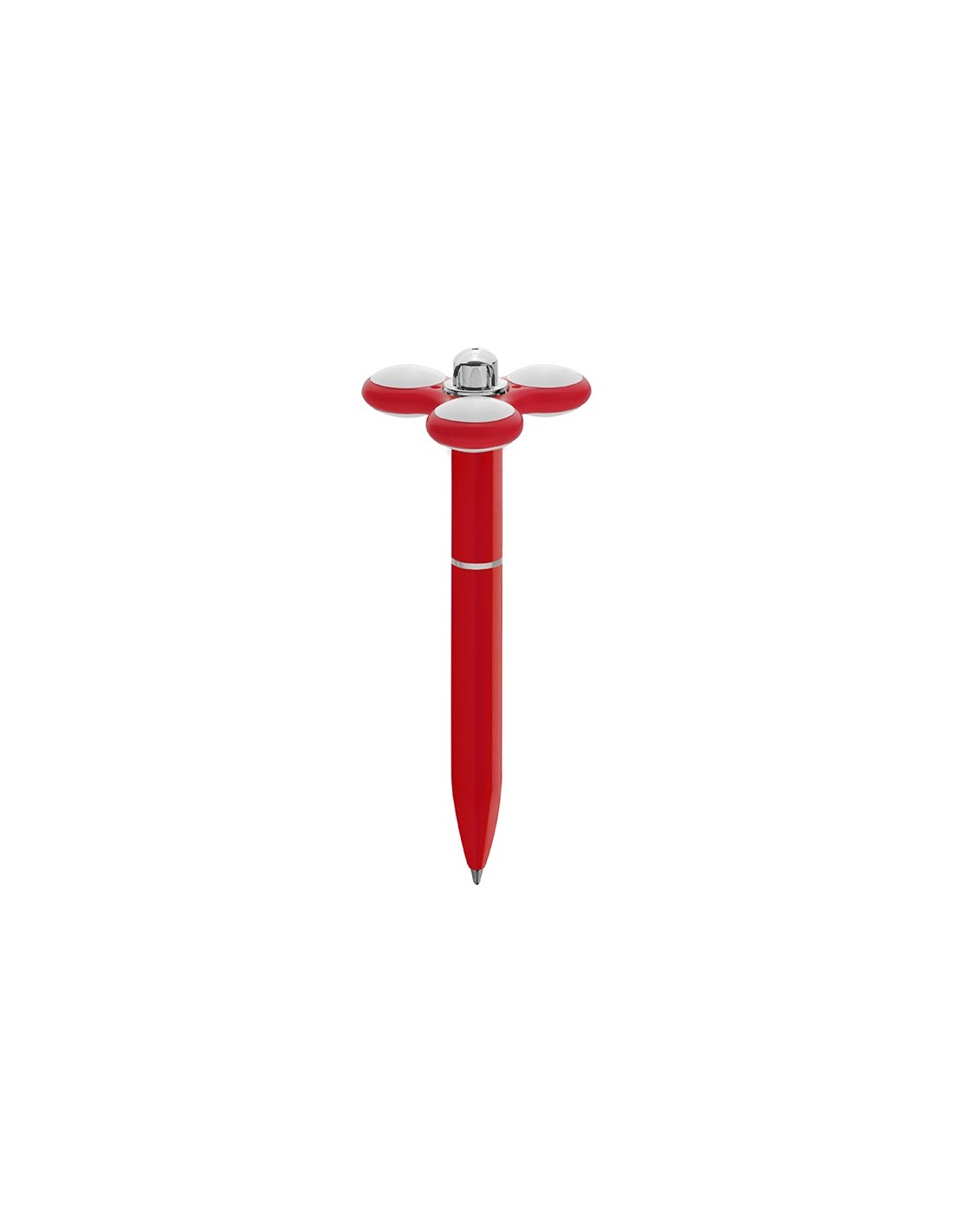 penna a sfera con spinner meccanismo a rotazione minuterie cromate refill con sfera al tungsteno inchiostro nero tecnica di stampa consigliata: serigrafica - tampografica - UV // Dimensione Articolo:Ø cm 1,34xh14 ca // Colore Articolo: Rosso // Materiale Articolo: plastica