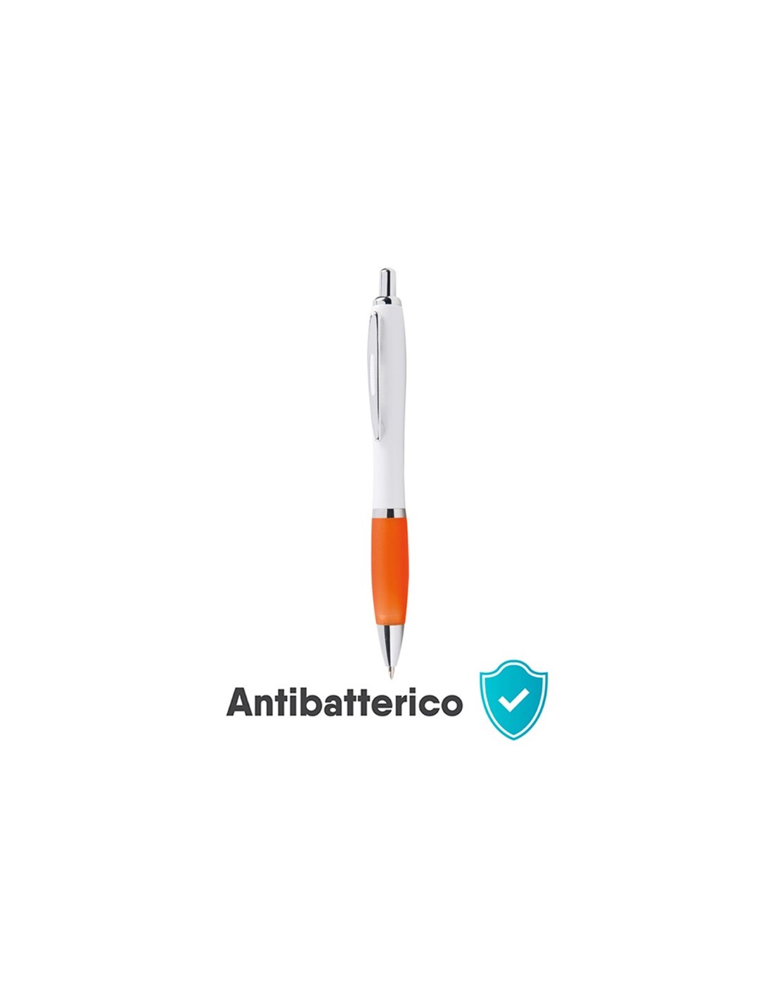 penna a sfera meccanismo a scatto corpo in plastica bianca grip colorata in gomma minuterie in metallo cromato refill jumbo con sfera al tungsteno inchiostro nero tecnica di stampa consigliata: tampografica - UV // Dimensione Articolo:Ø cm 1,25xh14 ca // Colore Articolo: Arancio // Materiale Articolo: plastica