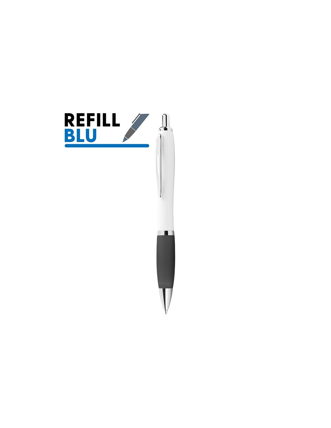 penna a sfera meccanismo a scatto corpo in plastica bianca grip colorata in gomma minuterie in metallo cromato refill jumbo inchiostro blu tecnica di stampa consigliata: tampografica - UV