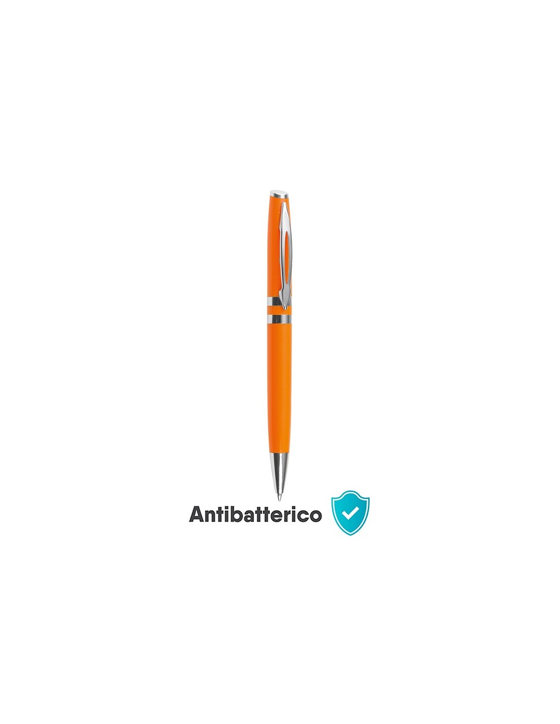penna a sfera meccanismo a rotazione corpo in plastica colorata minuterie in metallo cromato refill con sfera al tungsteno inchiostro nero tecnica di stampa consigliata: serigrafica - tampografica - UV // Dimensione Articolo:Ø cm 1,1xh14 ca // Colore Articolo: Arancio // Materiale Articolo: plastica