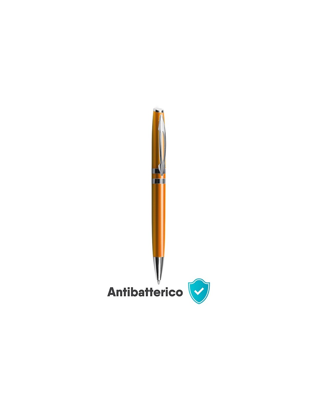 penna a sfera meccanismo a rotazione corpo in plastica colorata minuterie in metallo cromato refill con sfera al tungsteno inchiostro nero tecnica di stampa consigliata: serigrafica - tampografica - UV // Dimensione Articolo:Ø cm 1,1xh14 ca // Colore Articolo: Arancio Metal // Materiale Articolo: plastica