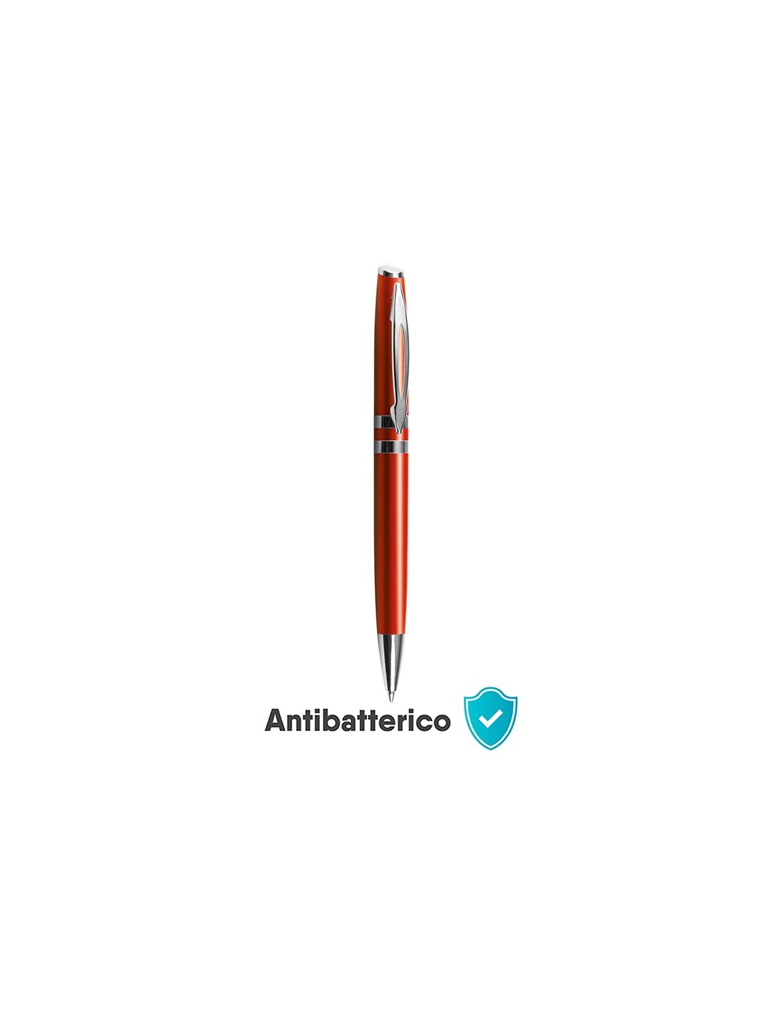 penna a sfera meccanismo a rotazione corpo in plastica colorata minuterie in metallo cromato refill con sfera al tungsteno inchiostro nero tecnica di stampa consigliata: serigrafica - tampografica - UV // Dimensione Articolo:Ø cm 1,1xh14 ca // Colore Articolo: Rosso Metal // Materiale Articolo: plastica