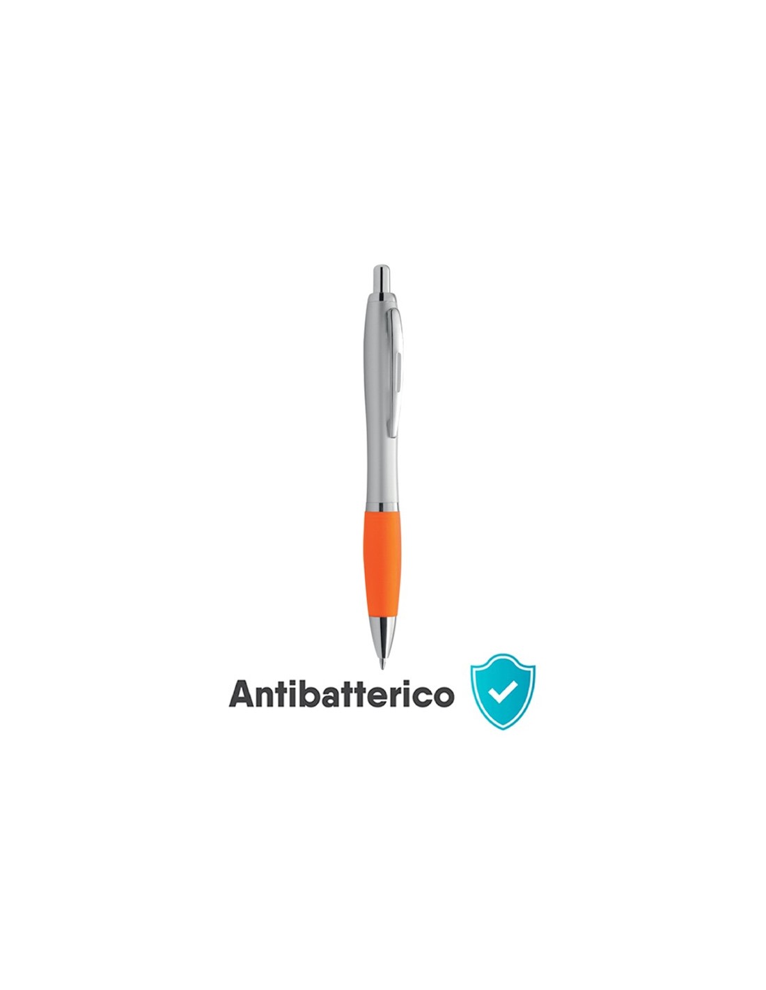 penna a sfera meccanismo a scatto corpo in plastica silver grip colorata in gomma minuterie in metallo cromato refill jumbo con sfera al tungsteno inchiostro nero tecnica di stampa consigliata: tampografica - UV // Dimensione Articolo:Ø cm 1,25xh14 ca // Colore Articolo: Arancio // Materiale Articolo: plastica e metallo