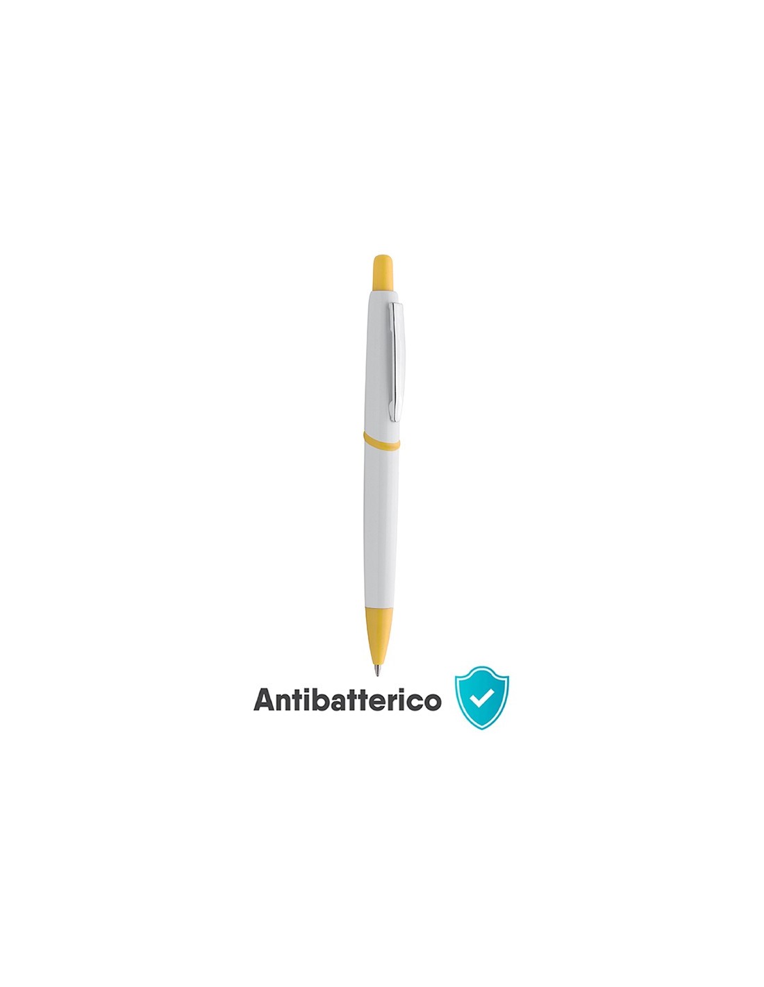 penna a sfera meccanismo a scatto corpo in plastica bianca minuterie colorate refill jumbo con sfera al tungsteno inchiostro nero tecnica di stampa consigliata: serigrafica - tampografica - UV // Dimensione Articolo:Ø cm 1,23xh14 ca // Colore Articolo: Giallo // Materiale Articolo: plastica