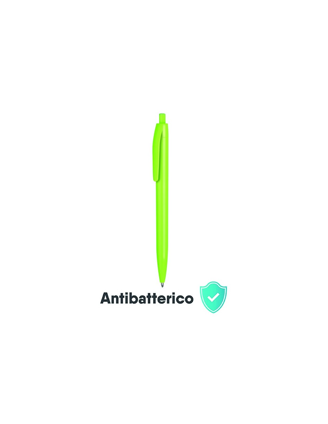 penna a sfera meccanismo a scatto corpo in plastica antibatterica colorata refill con sfera al tungsteno inchiostro nero tecnica di stampa consigliata: serigrafica - tampografica - UV // Dimensione Articolo:Ø cm 1,05xh14 ca // Colore Articolo: Verde Fluorescente // Materiale Articolo: plastica