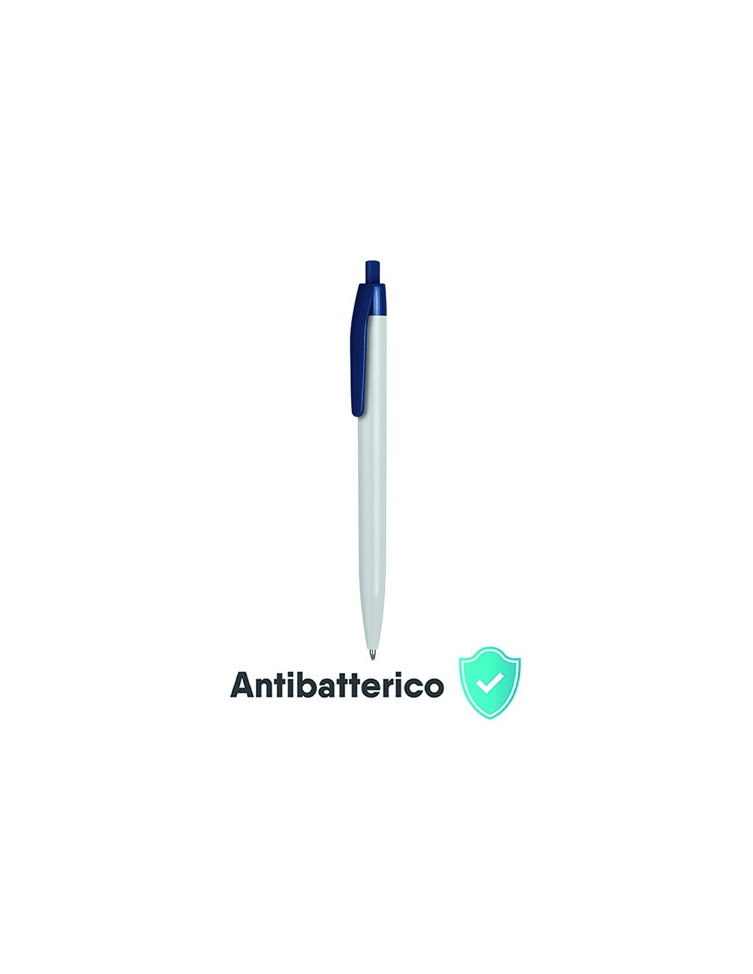 penna a sfera meccanismo a scatto corpo in plastica solid antibatterica refill con sfera al tungsteno inchiostro nero tecnica di stampa consigliata: serigrafica - tampografica - UV // Dimensione Articolo:Ø cm 1,05xh14 ca // Colore Articolo: Blu // Materiale Articolo: plastica
