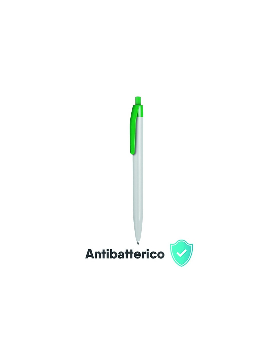 penna a sfera meccanismo a scatto corpo in plastica solid antibatterica refill con sfera al tungsteno inchiostro nero tecnica di stampa consigliata: serigrafica - tampografica - UV // Dimensione Articolo:Ø cm 1,05xh14 ca // Colore Articolo: Verde // Materiale Articolo: plastica