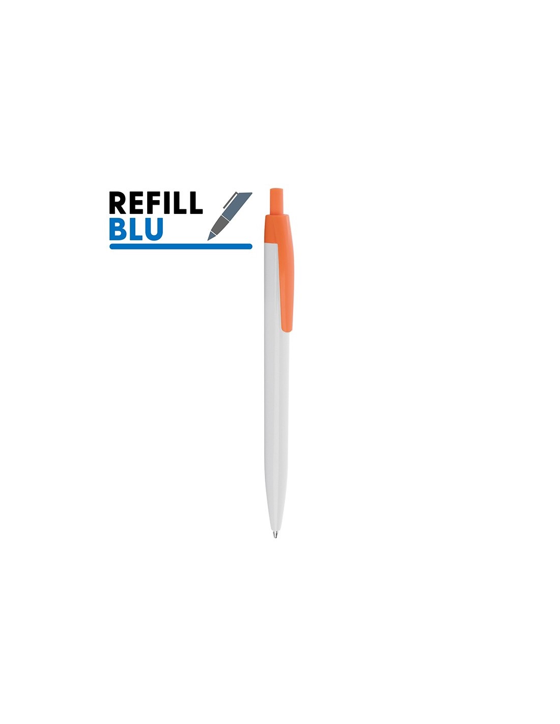 penna a sfera meccanismo a scatto corpo in plastica solid inchiostro blu tecnica di stampa consigliata: serigrafica - tampografica - UV // Dimensione Articolo:Ø cm 1,05xh14 ca // Colore Articolo: Arancio // Materiale Articolo: plastica