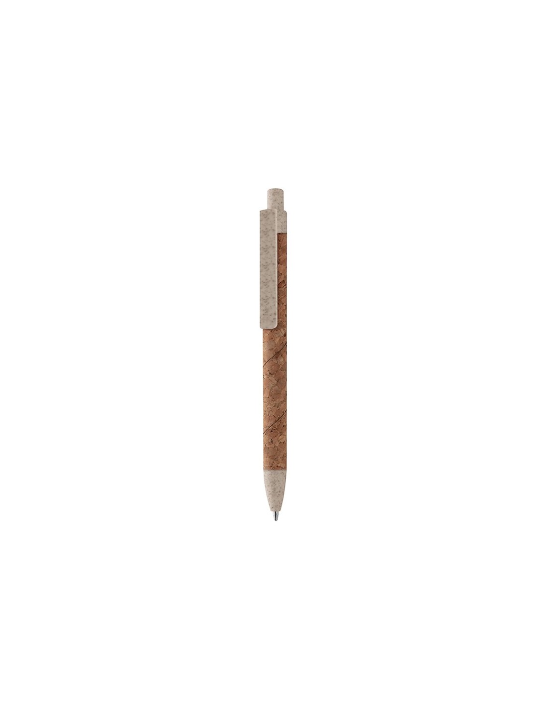 penna a sfera meccanismo a scatto corpo in sughero minuterie in paglia di frumento refill inchiostro nero tecnica di stampa consigliata: serigrafica - tampografica - UV // Dimensione Articolo:Ø cm 1,2 x 13,5 ca // Colore Articolo: Ecru // Materiale Articolo: sughero e paglia di frumento