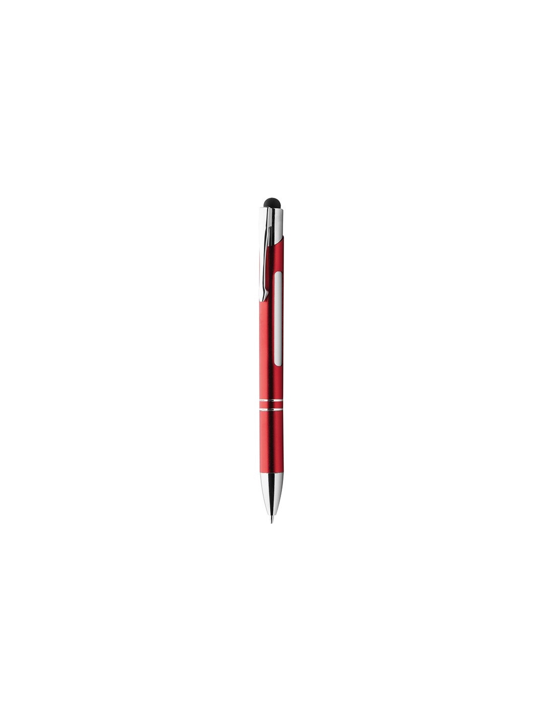 penna a sfera meccanismo a rotazione gommino per touch screen logo retroilluminato con luce led bianca attivazione luce led tramite gommino touch screen refill inchiostro nero tecnica di stampa consigliata: serigrafica - tampografica - incisione - UV // Dimensione Articolo:Ø cm 1,25 x 14 ca // Colore Articolo: Rosso // Materiale Articolo: corpo in alluminio