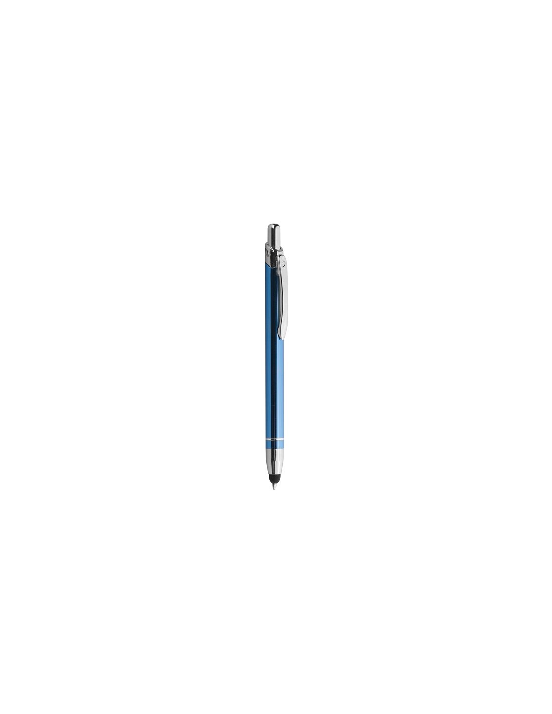 penna a sfera con gommino per touch screen meccanismo a scatto corpo in lacca minuterie in metallo cromato refill con sfera al tungsteno inchiostro nero tecnica di stampa consigliata: serigrafica - tampografica - incisione - UV // Dimensione Articolo:Ø cm 1 x h14 ca // Colore Articolo: Royal // Materiale Articolo: alluminio