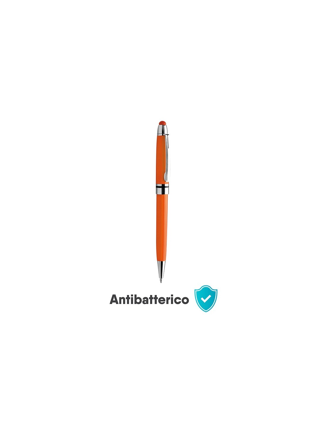 penna a sfera con gommino per touch screen meccanismo a scatto minuterie in metallo cromato refill jumbo con sfera al tungsteno inchiostro nero tecnica di stampa consigliata: serigrafica - tampografica - UV // Dimensione Articolo:Ø cm 1,26xh14,5 ca // Colore Articolo: Arancio // Materiale Articolo: plastica e metallo