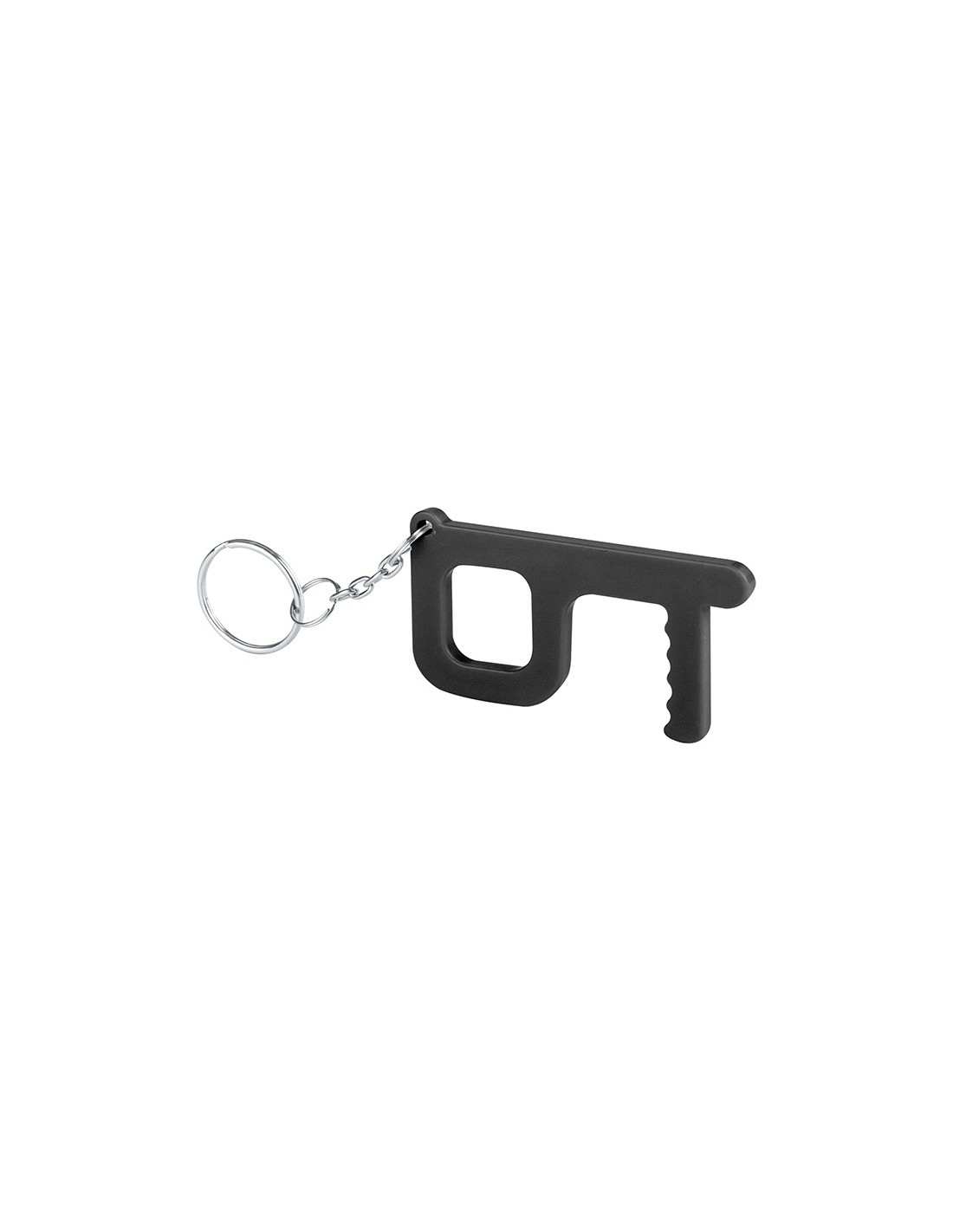 portachiavi anti-contatto realizzato in plastica antibatterica appositamente progettato per evitare di toccare le superfici di uso comune comoda impugnatura per il dito tecnica di stampa consigliata: tampografica - incisione - UV // Dimensione Articolo:4 x 7 x 0.5 cm // Colore Articolo: Nero // Materiale Articolo: plastica antibatterica
