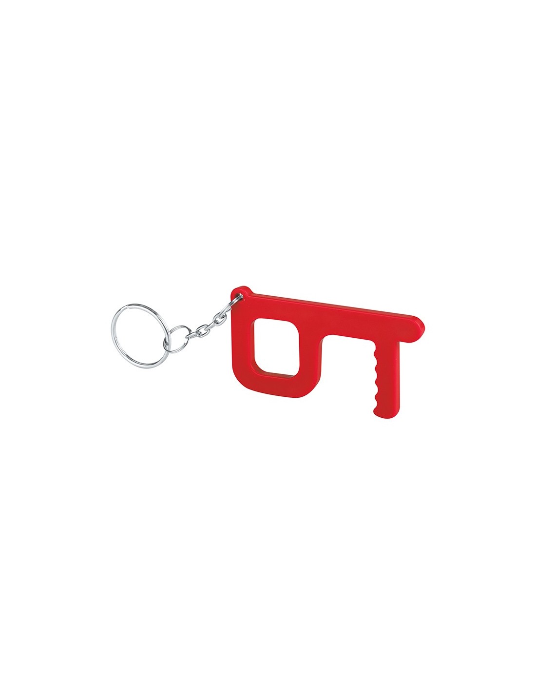 portachiavi anti-contatto realizzato in plastica antibatterica appositamente progettato per evitare di toccare le superfici di uso comune comoda impugnatura per il dito tecnica di stampa consigliata: tampografica - incisione - UV // Dimensione Articolo:4 x 7 x 0.5 cm // Colore Articolo: Rosso // Materiale Articolo: plastica antibatterica