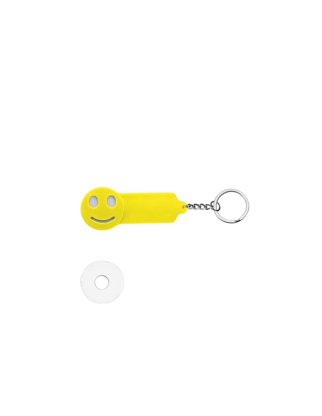 portachiavi in plastica e metallo disco estraibile per carrello spesa tecnica di stampa consigliata: serigrafica - tampografica - UV // Dimensione Articolo:cm 6,5x2,6 ca // Colore Articolo: Giallo // Materiale Articolo: plastica e metallo