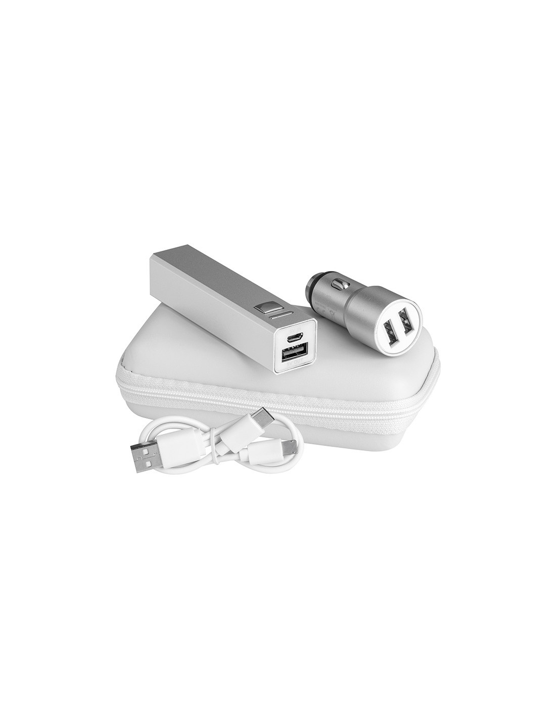 Power Bank - Set Ricarica Auto 2200 mAh Input Micro USB Caricatore Auto USB 2 Uscite USB 2100 mA 2 Funzioni Caricatore USB 1000 mA Cavo Incluso Connessione Micro USB, Tipo C e Lightning Pulsante on/off tecnica di stampa consigliata: incisione - serigrafica - tampografica - UV 174 gr.