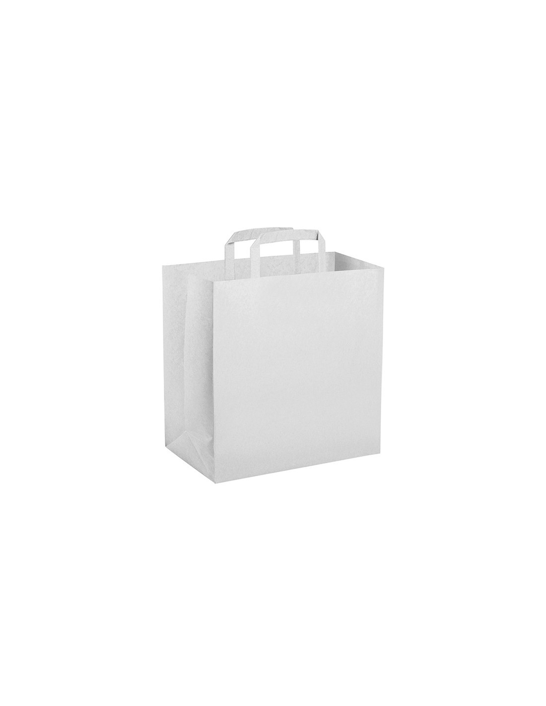 shopper con soffietto maniglia piatta 90 gr/mq portata 5 kg tecnica di stampa consigliata: serigrafica // Dimensione Articolo:cm 32x22x33 ca // Colore Articolo: Bianco // Materiale Articolo: carta kraft bianco