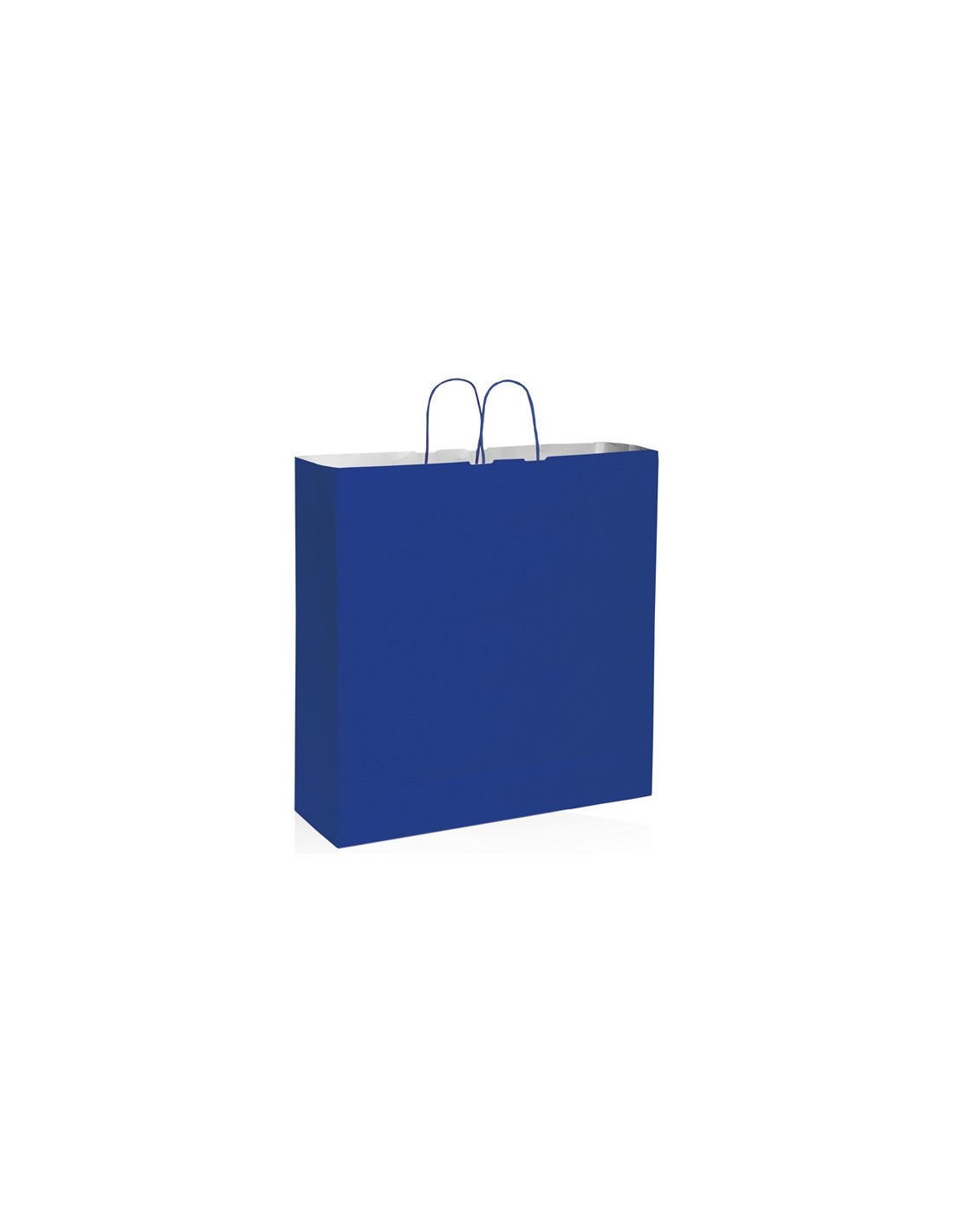 shopper con soffietto maniglia ritorta 120 gr/mq portata 11 kg tecnica di stampa consigliata: serigrafica // Dimensione Articolo:cm 54x50x14 ca // Colore Articolo: Blu // Materiale Articolo: carta kraft bianca