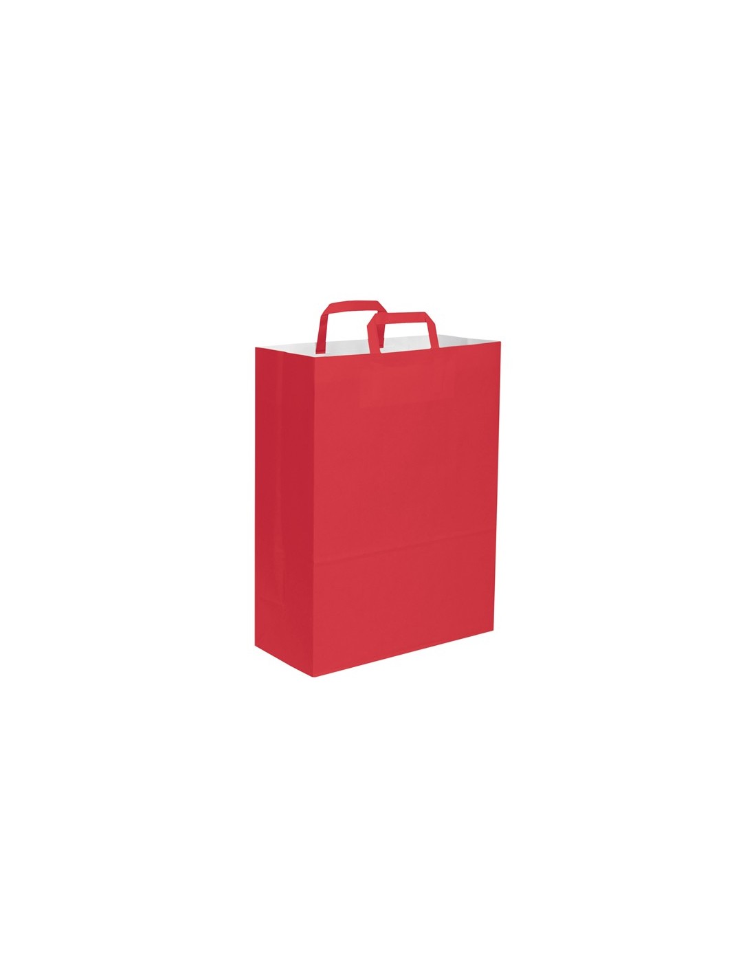 shopper con soffietto maniglia piatta 100 gr/mq portata 10 kg tecnica di stampa consigliata: serigrafica // Dimensione Articolo:cm 32x43x17 ca // Colore Articolo: Rosso // Materiale Articolo: carta kraft bianca