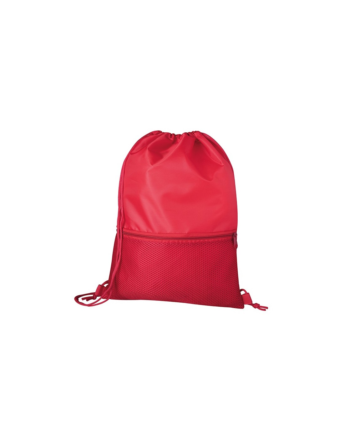 sacca zaino nylon 210D tasca frontale in materiale traforato con zip doppia corda di chiusura tecnica di stampa consigliata: serigrafica - sublimatica (BI) // Dimensione Articolo:cm 33x44 ca // Colore Articolo: Rosso // Materiale Articolo: 100% poliestere