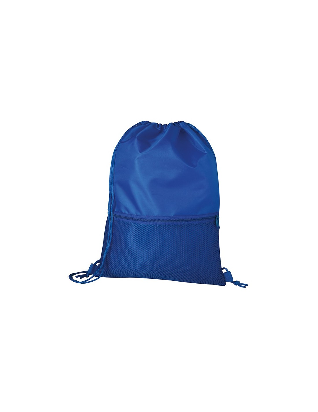 sacca zaino nylon 210D tasca frontale in materiale traforato con zip doppia corda di chiusura tecnica di stampa consigliata: serigrafica - sublimatica (BI) // Dimensione Articolo:cm 33x44 ca // Colore Articolo: Royal // Materiale Articolo: 100% poliestere