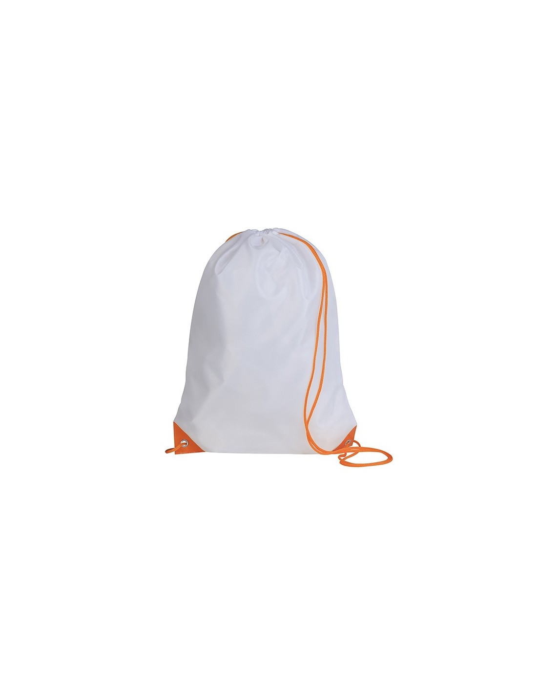 sacca zaino nylon 210D doppia corda di chiusura tecnica di stampa consigliata: serigrafica - sublimatica (base bianca) // Dimensione Articolo:cm 33x45 ca // Colore Articolo: Bianco Arancio // Materiale Articolo: 100% poliestere
