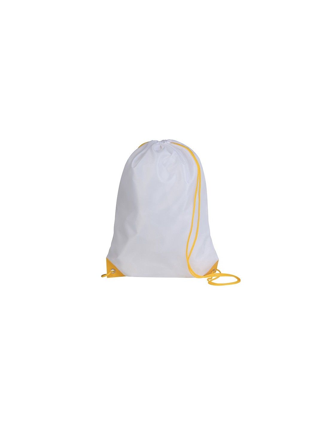 sacca zaino nylon 210D doppia corda di chiusura tecnica di stampa consigliata: serigrafica - sublimatica (base bianca) // Dimensione Articolo:cm 33x45 ca // Colore Articolo: Bianco Giallo // Materiale Articolo: 100% poliestere