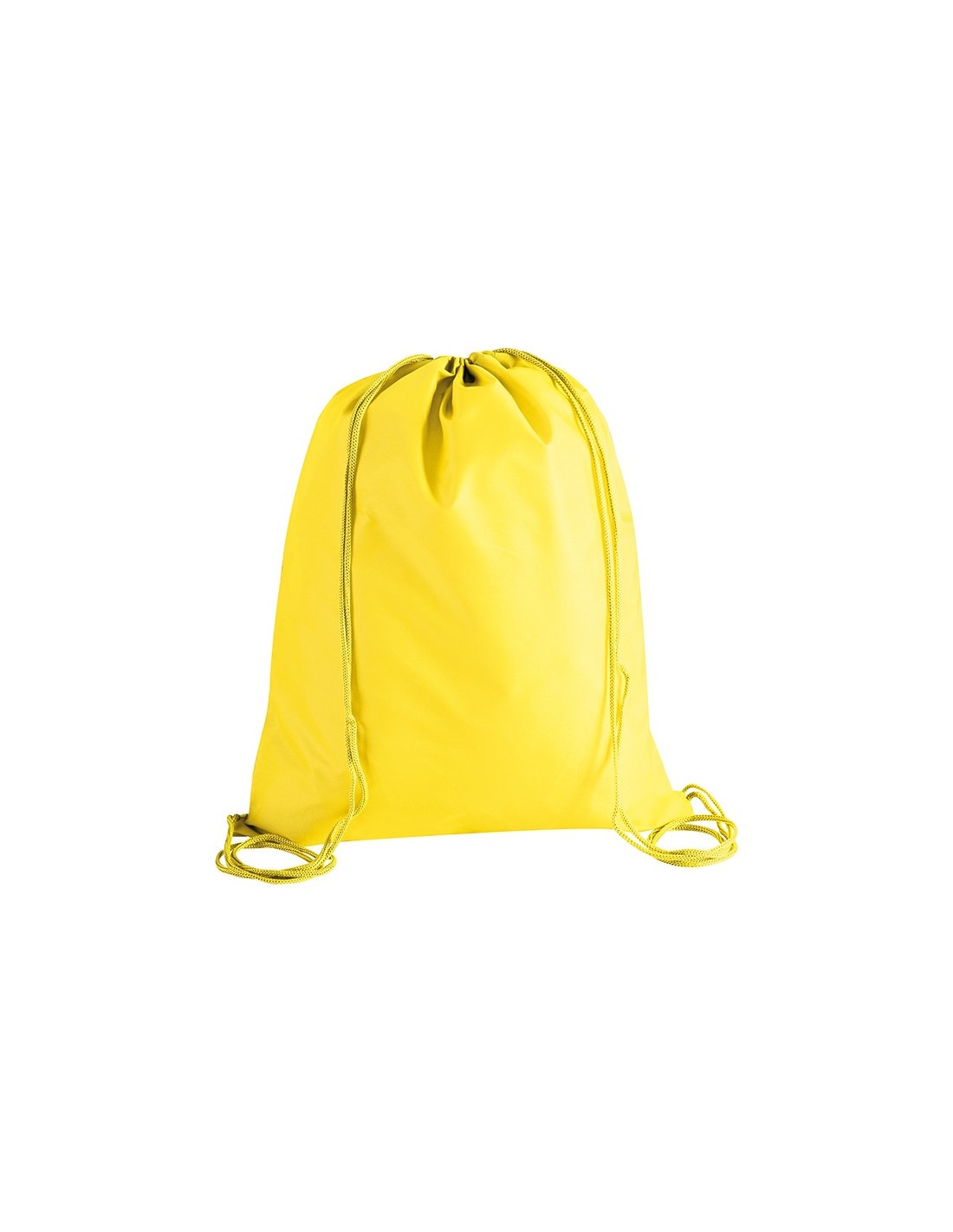 sacca zaino nylon 210D doppia corda di chiusura stesso colore della sacca tecnica di stampa consigliata: serigrafica - sublimatica (BI) - Transfer // Dimensione Articolo:cm 33x45 ca // Colore Articolo: Giallo // Materiale Articolo: 100% poliestere